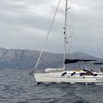 Alle 7,30 esco dal porto. C’è un po’ di brezza favorevole a una bolina larga, forse non è molta, ma ci si può provare. Mi accingo a ritirare i parabordi e armare le vele, quando un vecchio pescatore, mi passa dietro, mi indica qualcosa a poppa. Forse ho una cima in acqua. No. Non capisco.