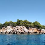 Consulto il meteo di Predictwind e Poseidon più volte al giorno, ma non ci sono cambiamenti significativi. Resto in attesa di una “finestra” che mi permetta di risalire. Nel frattempo l’amico Giancarlo, che da Lefkada aveva puntato a Nord, mercoledì si era fermato a dormire nella baia delle due rocce (Ormos Skala per i greci)